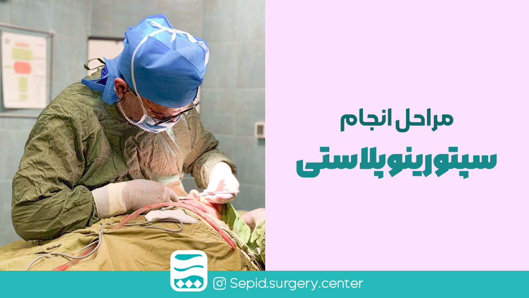عمل سپتورینوپلاستی معمولاً تحت بیهوشی عمومی انجام میشود و بین ۱ تا ۳ ساعت زمان میبرد. مراحل کلی آن شامل موارد زیر است: