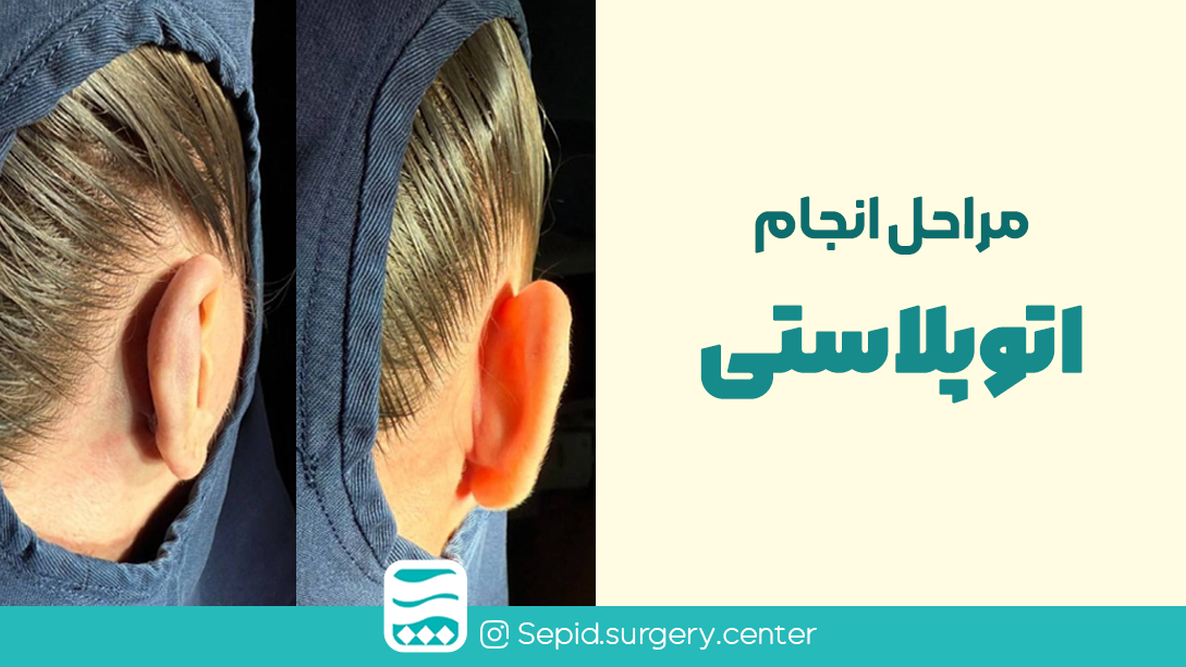 جراحی اتوپلاستی معمولاً تحت بیهوشی موضعی یا عمومی انجام می‌شود و مدت زمان آن بین ۱ تا ۳ ساعت است. مراحل کلی شامل موارد زیر است: